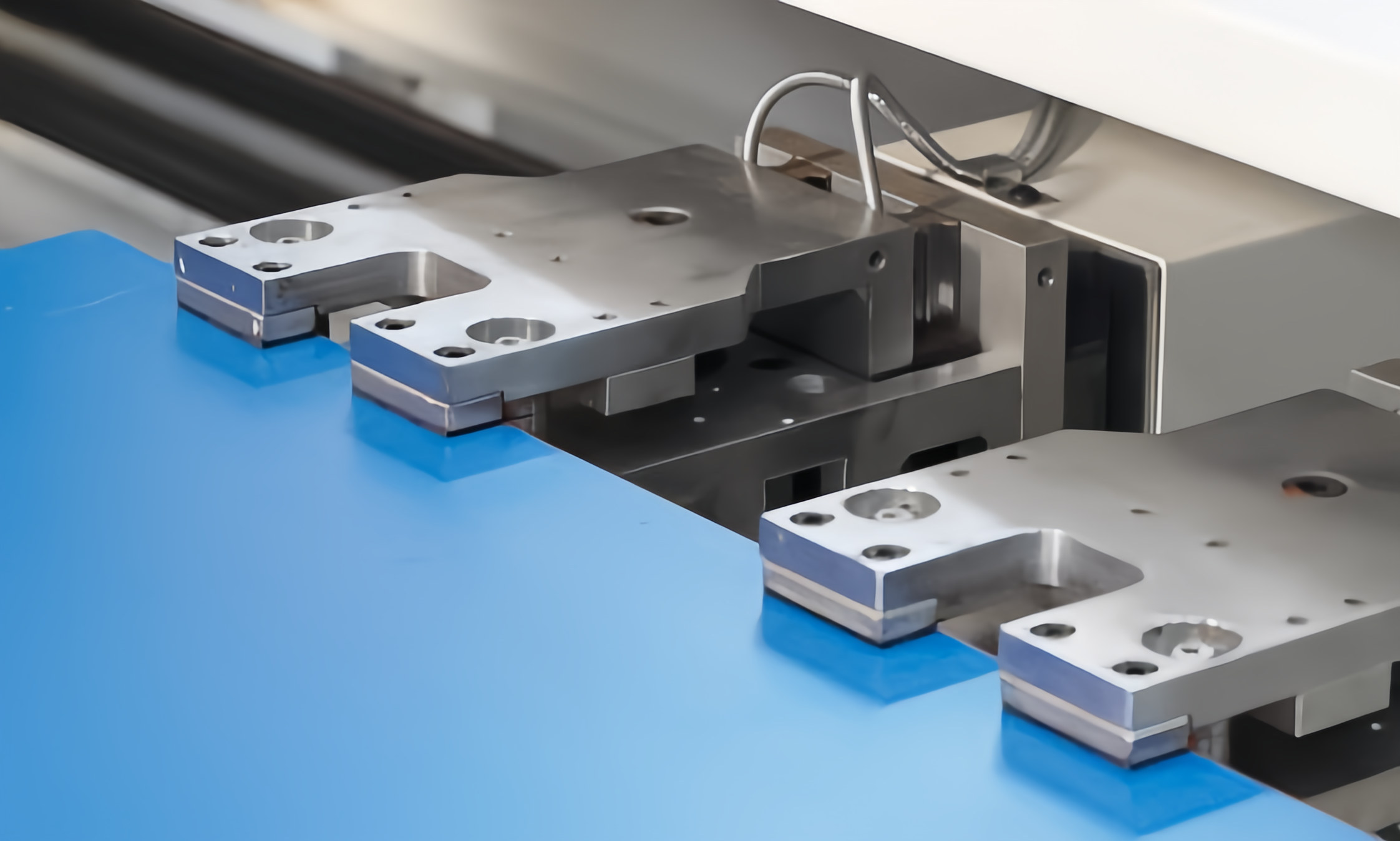 The CNC drilling machine workpiece clamping unit is an essential component used to secure the panel during machining, preventing movement while drilling or milling operations are performed. The clamping system typically operates using a pneumatic or automatic mechanism, ensuring firm holding and accurate positioning of the workpiece.